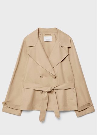 Trench corta fluida beige con cinturón