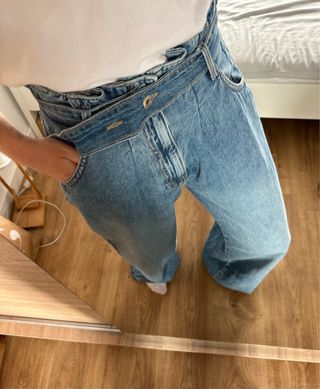 Vaqueros de corte ancho y tiro alto, con un diseño moderno y cómodo.