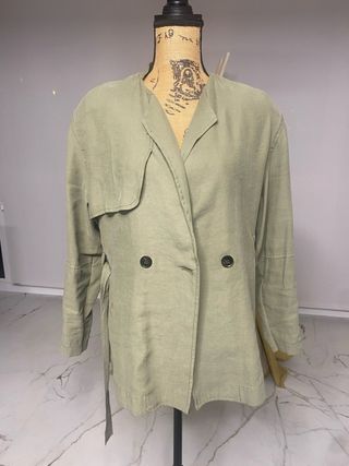 Chaqueta verde larga con cinturón