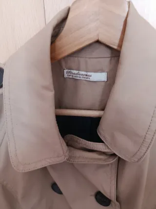 Nueva!! Al 50% Gabardina de mujer con un diseño clásico y elegante. Es una prenda versátil para cualquier ocasión. - Doble botonadura. - Cinturón para ajustar. - Cuello solapa.