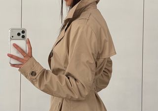 Abrigo largo beige con cinturón