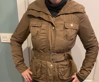 Chaqueta estilo sahariana de Zara. - Color marrón. - Diseño con cinturón. - Bolsillos frontales. - edicion limitada - con forro desmontable