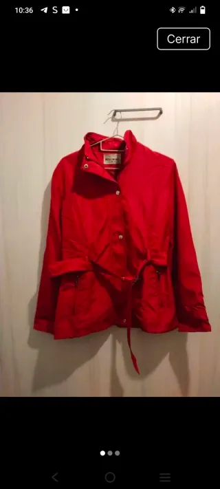 Cazadora elegante de color rojo, ideal para añadir un toque de estilo. - Diseño con cinturón para ajustar la silueta. - Cierre de botones dorados. - Bolsillos frontales con solapa. - Puños enrollados.