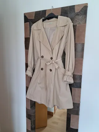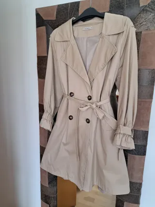Gabardina clásica en color beige, perfecta para añadir un toque de estilo a tu armario. - Cinturón a juego para ajustar la silueta. - Diseño atemporal con solapas. - Mangas con detalle fruncido.