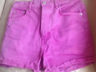 Shorts de tiro alto en color fucsia. - Diseño de 4 bolsillos. - Cintura con trabillas para cinturón. - Bajo deshilachado con vuelta.