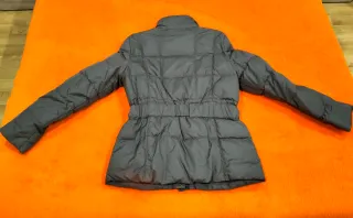 Abrigo de invierno con un diseño acolchado y cinturón. - Capucha con pelo. - Cierre de cremallera. - Cinturón a juego. Abrigo de invierno de plumas de pato. La cremallera tiene truco,hay que encajarla bien para que suba pero está como nuevo. Tiene un color entre marrón y verde.