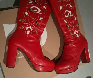 Botas altas de estilo Zingara. 38 Cinturon la Guerrilla M - Diseño con detalles blancos y tachuelas doradas. - Inicial Q bordada en la caña. - Tacón grueso y plataforma delantera.