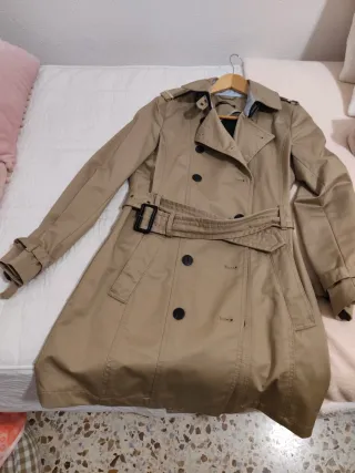 Clásica gabardina de Mango en color beige. - Diseño de doble abotonadura. - Cinturón ajustable a la cintura. - Cuello con solapas. - Puños con trabillas.
