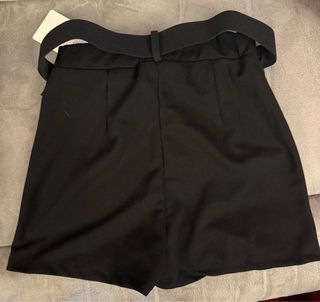 Pantalón corto de efecto piel con cinturón. - Cintura elástica con cinturón. - Diseño arrugado en la cintura. - Dobladillo en los bajos.