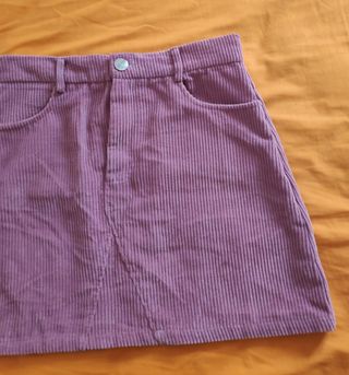 Minifalda de pana en color rosa, ideal para cualquier ocasión. - Diseño de pana con textura acanalada. - Cintura con trabillas para cinturón. - Bolsillos delanteros. - Cierre de botón y cremallera. Cintura Alta. Corte Recto. Dos Bolsillos Frontales Superiores. Muy Cómoda y Suave. -Marca: Shein. -Composicion: 100% Poliéster. -Color: Rosa Oscuro. -Talla: M. -Estado: Muy Bueno. Prácticamente Nueva.