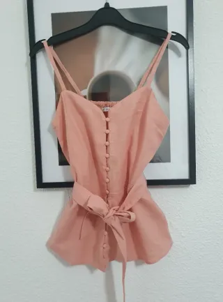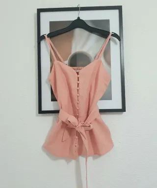 Blusa de tirantes con cinturón. #blusa #croptop #easywear #tallaxs #rosa #top
