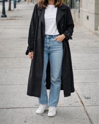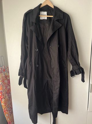 Gabardina larga de color negro. Un clásico atemporal para cualquier armario. - Cierre de doble botonadura. - Cinturón ajustable en puños. - Bolsillos laterales.