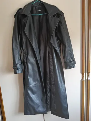 Abrigo largo cuero Pull&Bear negro