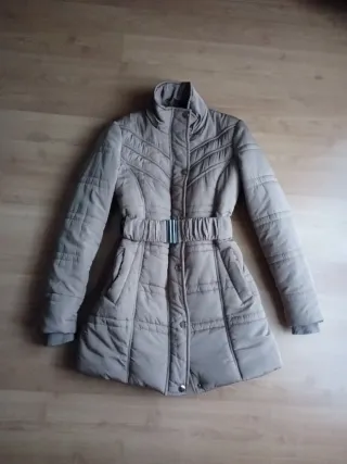 Abrigo beige acolchado con cinturón