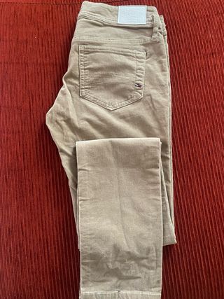 Pantalón denim mujer de micro pana marca Tommy Hilfiger - Modelo NEVADA - Talla W29 L34 - Color beige. - Tejido de micro pana. - Detalle de bolsillo trasero con logo. - Cintura con trabillas para cinturón. El equivalente talla es aprox una 38. Se hacen envios.