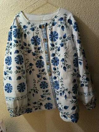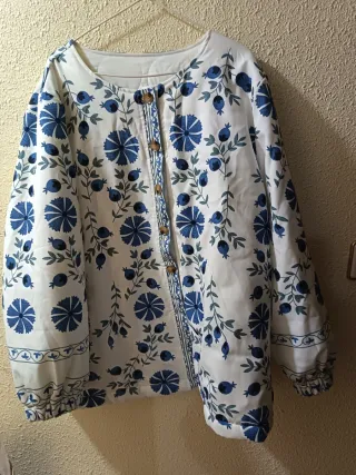 Chaqueta blanca con flores azules