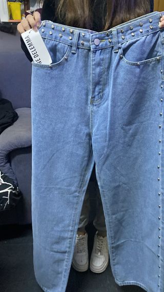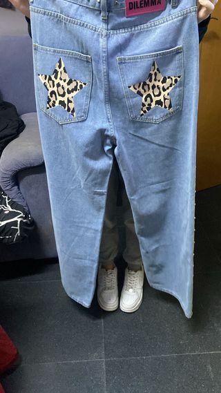 Pantalón vaquero de la marca ONE DILEMNA con un diseño moderno. - Color azul. - Decorado con tachuelas a lo largo de los laterales. - Cintura con trabillas para cinturón. - Cierre de botón y cremallera.