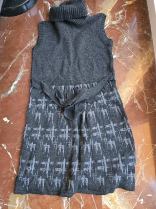 Vestido Formula Joven del corte inglés en tonos grises. Talla 42. Cuello alto. Ideal invierno. Vestido de invierno de punto con cuello alto y cinturón. - Diseño sin mangas. - Falda con estampado geométrico. - Cinturón a juego.