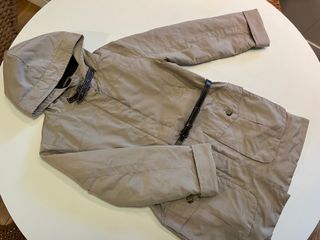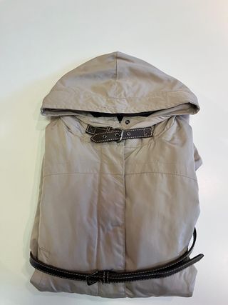 Chaquetón para mujer de Massimo Dutti, muy cómodo, ligero y repelente a la lluvia. Características: - talla 30/S (amplia) -acolchado interior -capucha con cierre de hebilla -cuatro bolsillos (2 altos y 2 bajos) -cinturón (101cm) ajustable en cintura -cierre con cremallera doble sentido