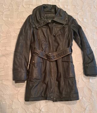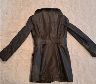 Bonito abrigo con algun roce del uso Abrigo cazadora de piel para mujer, de corte 3/4. Un clásico atemporal. - Diseño entallado. - Cinturón a juego. - Bolsillos frontales.