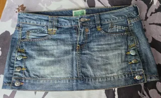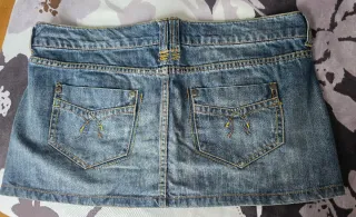 Minifalda vaquera de la marca Bershka. - Diseño clásico. - Detalle de botones decorativos en los laterales. - Cintura con trabillas para cinturón.
