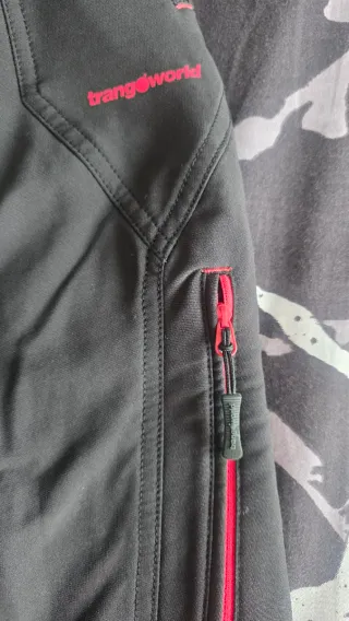 Pantalón Trangoworld de color negro. Diseño moderno y funcional. - Cintura con trabillas y cinturón. - Bolsillos laterales con cremallera. - Cremalleras decorativas en los bolsillos. Es como una 38-40 y está usado dos veces, casi a estrenar