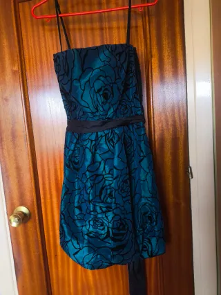Elegante vestido de fiesta en perfecto estado. - Diseño con estampado floral. - Cinturón a juego. - Incluye torera a juego.