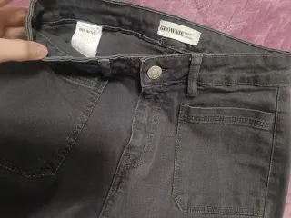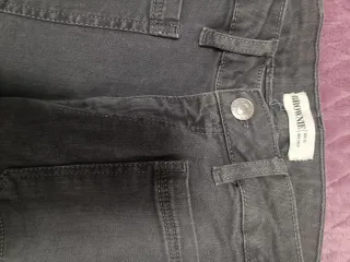Vaqueros de corte moderno en color negro. De cadera o talle bajo. - Diseño de cinco bolsillos. - Cierre con cremallera y botón. - Trabillas para cinturón.
