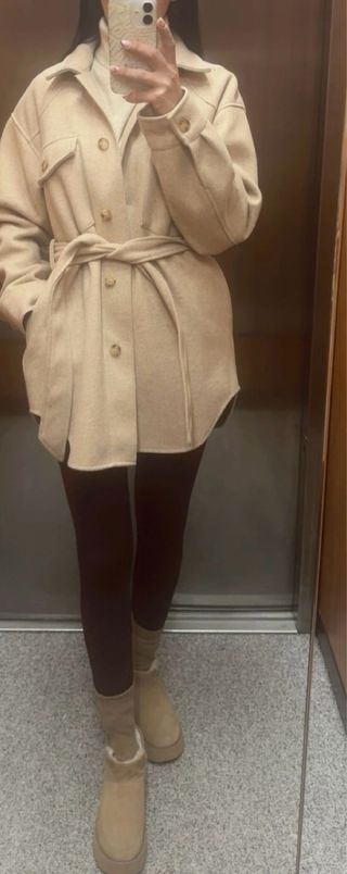 Abrigo de corte moderno con cinturón para ajustar a la cintura. - Diseño de solapa. - Cierre de botones. - Bolsillos frontales. es una xs pero como si fuera una s
