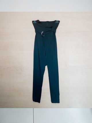 Elegante mono de terciopelo con un diseño sofisticado. - Tejido de terciopelo suave. - Detalle de cinturón con hebilla. - Tirantes finos.