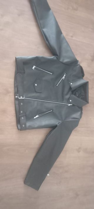 Cazadora estilo rockera. - Diseño con cremalleras. - Bolsillo con botón. Cazadora en perfecto estado. Usada 2 veces. Su talla es XL pero realmente es M-L - Cinturón ajustable.