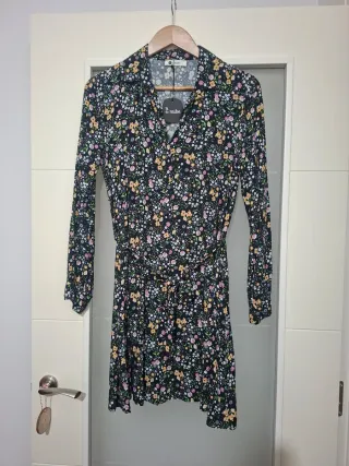 Vestido fluido con un vibrante estampado floral. Su diseño ligero lo hace ideal para diversas ocasiones. - Sirve para talla M - L - Tejido de gasa. - Cinturón a juego para ajustar. - Diseño con volantes en la falda.