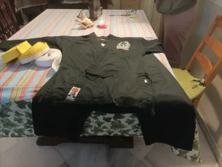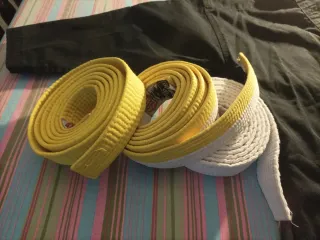 Kimono de Hapkido en color negro, diseñado para niños. Incluye cinturones. - Kimono de manga larga. - Cierre cruzado. - Incluye cinturón blanco y dos cinturones amarillos. -140c