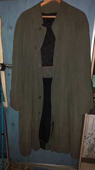 Chaqueta de abrigo con un diseño muy chulo. En perfecto estado y muy calientita Puedo hacer entregas personales en sevilla - Color verde oliva. - Incluye cinturón a juego con hebilla. - Cuello alto. - Bolsillos laterales.