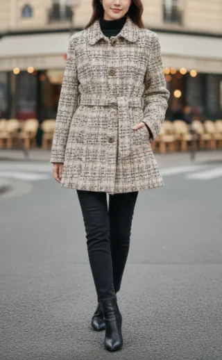Abrigo corto tweed con cinturón