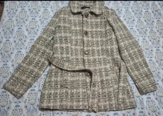 Elegante blazer de Zara con un diseño moderno y favorecedor. - Cuello amplio y solapa asimétrica. - Cierre frontal con cremallera. - Cinturón a juego con hebilla metálica. - Detalle de trabillas y ojales en el cinturón. Sin estrenar sin etiqueta