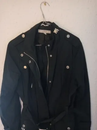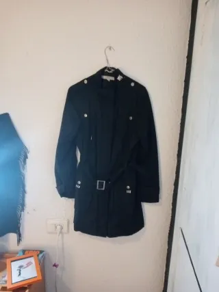 Comprada en las tiendas del crucero. Solo me la puse durante ese viaje. Elegante gabardina negra con detalles que la hacen única. - Diseño con cinturón para ajustar a la cintura. - Botones decorativos en hombros y bolsillos. - Puños con detalle de líneas blancas.