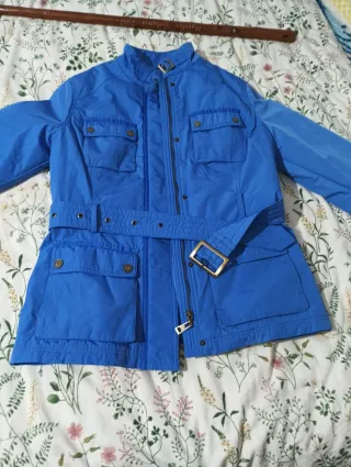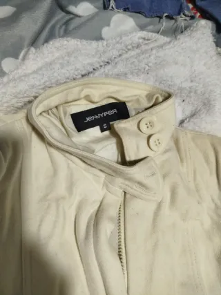 Elegante chaquetón de color beige, perfecto para añadir un toque sofisticado a tu atuendo. - Diseño con cinturón para ajustar la cintura. - Cuello alto con cierre de botón. - Puños con detalle de botones. - Bolsillos frontales. Eligiendo 4 prendas de mi perfil, una de regalo, la de menos valor. Total pagas 3 te llevas 4 prendas