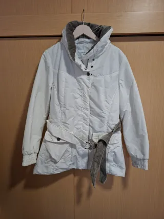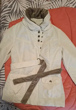 Chaqueta elegante de color blanco, perfecta para añadir un toque chic a tu armario. - Diseño con cinturón a juego. - Cuello alto con forro. - Puños elásticos.