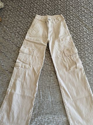 Pantalón cargo ancho mujer talla 34 beige