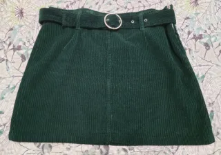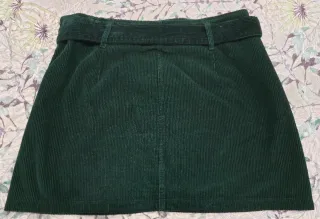 Minifalda de pana en color verde, con un diseño moderno y un cinturón a juego. - Tejido de pana. - Cinturón con hebilla circular. - Cierre de cremallera lateral.