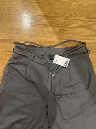 Pantalón de vestir H&M en color gris. Presenta un diseño elegante con cinturón. - Cintura con trabillas para cinturón. - Cinturón de tela a juego. - Pierna ancha.
