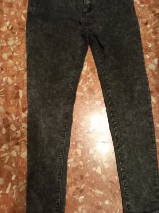 Vaqueros de mujer con un moderno efecto lavado en tonos grises y negros. Son cómodos y versátiles. - Diseño de corte recto. - Cintura con trabillas para cinturón. - Cierre de cremallera y botón.