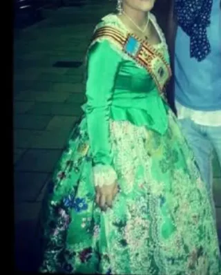 Traje de fallera en color verde con un estampado floral multicolor. Un diseño elegante y tradicional. - Escote con volantes de encaje. - Mangas abullonadas con encaje. - Cinturón a juego. - Falda amplia con gran estampado. *PRECIO SIN MANTELETAS* SE VENDE SOLO LA FALDA Y CORPIÑO, SIN PROBLEMA DE VENIR A PROBAR! URGE VENDER