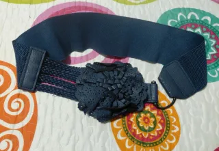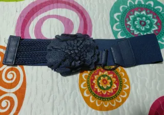 Vendo cinturón elástico azul marino, con flores. Se abrocha con corchetes. Es elástico. Longitud 73 cm. Sin usar