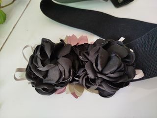 Precioso cinturon con flores, ideales para dar un toque especial a tus atuendos. en muy buen estado y lucen delicados. - Cinturón negro con flores de colores variados. - Material elástico y cómodo de llevar.