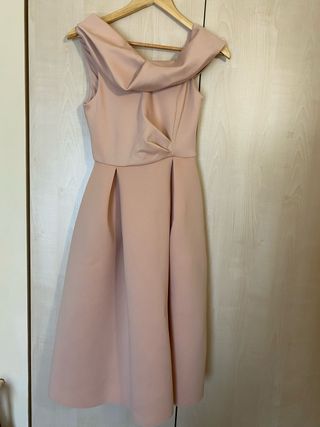 Vestido rosa clarito de ASOS Design. Talla XS. Muy cómodo y perfecto para evento en primavera-verano. Usado solo una vez para una boda. En perfecto estado. El cinturón de flores no va incluido.