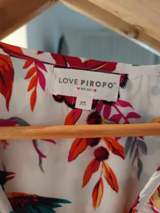 Jersey de Zara con un llamativo estampado floral. - Diseño con flores en tonos rojos y azules. - Manga corta tipo murciélago. - Cintura elástica con cinturón. - Tejido ligero y fluido.