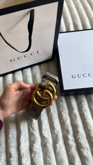 Comprado en tienda oficial, apenas usado. Viene con caja, bolsa antipolvo y factura. Si compras dos, puedo ofrecer un descuento. - Hebilla con logo GG. - Correa reversible. - Incluye bolsa guardapolvo.