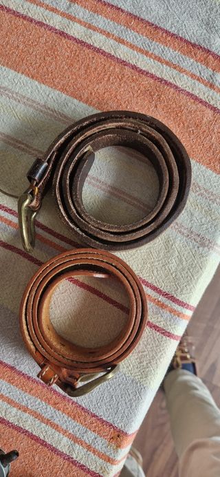 Lote de cinturones para niños en diferentes tonalidades. Perfectos para complementar cualquier atuendo. - Cinturón verde con detalles en cuero. - Cinturón beige de tela con hebilla plateada. - Cinturón verde oliva con hebilla metálica. - Cinturón morado con detalles en cuero. - Cinturón azul marino con hebilla plateada. - Cinturón azul con hebilla plateada. Cada uno 3€, si son más se puede hacer oferta.